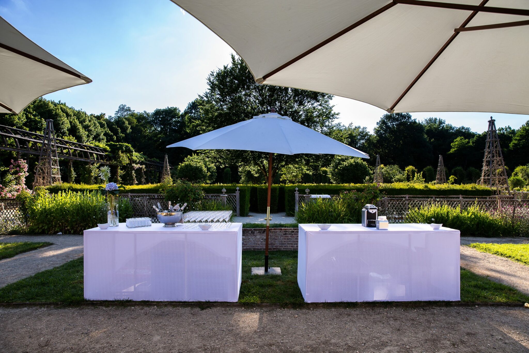 Nous leur avons donc proposé un cadre d’exception, le château de Chamerolles dans le Loiret, avec un cocktail apéritif dressé dans les sublimes jardins puis un dîner servi dans la grande halle du XVIIème siècle.