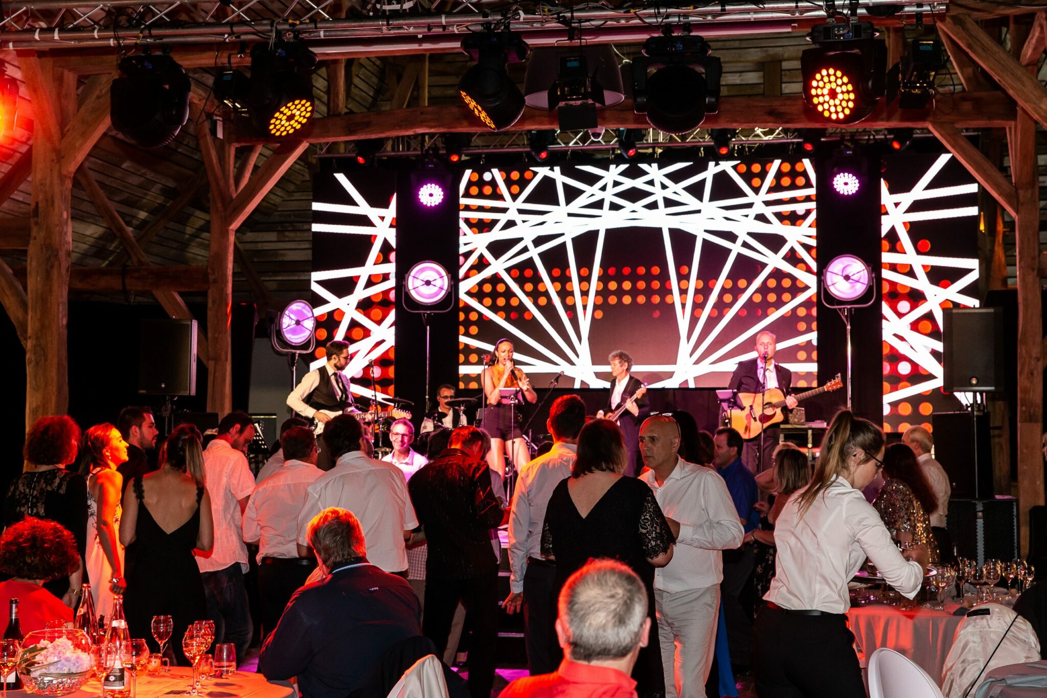 Quelques artistes sont venus animer le repas avec des numéros de cabaret déjà vus dans l’émission « le plus grand cabaret », puis un groupe live a interprété les plus grands tubes d’hier et d’aujourd’hui.