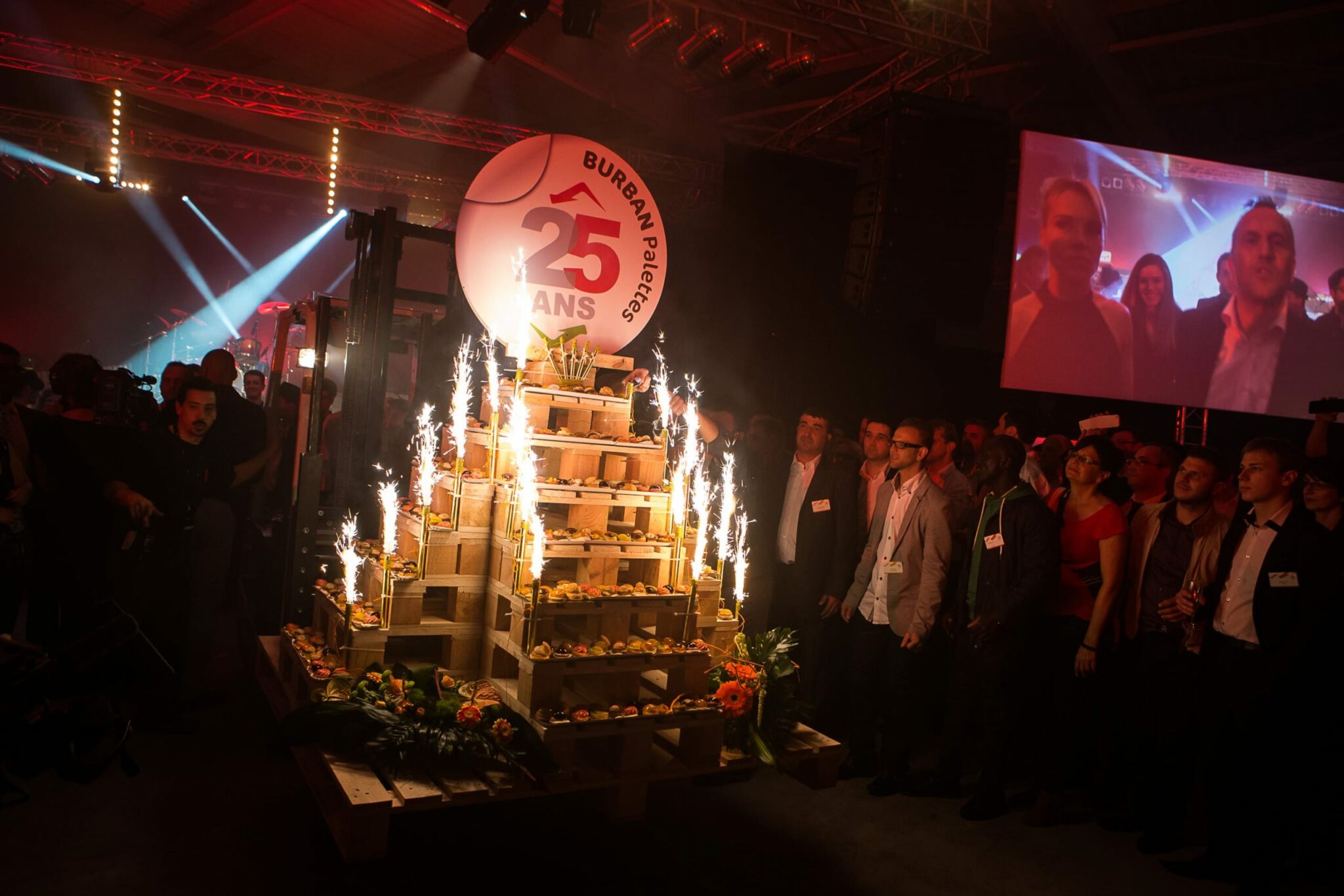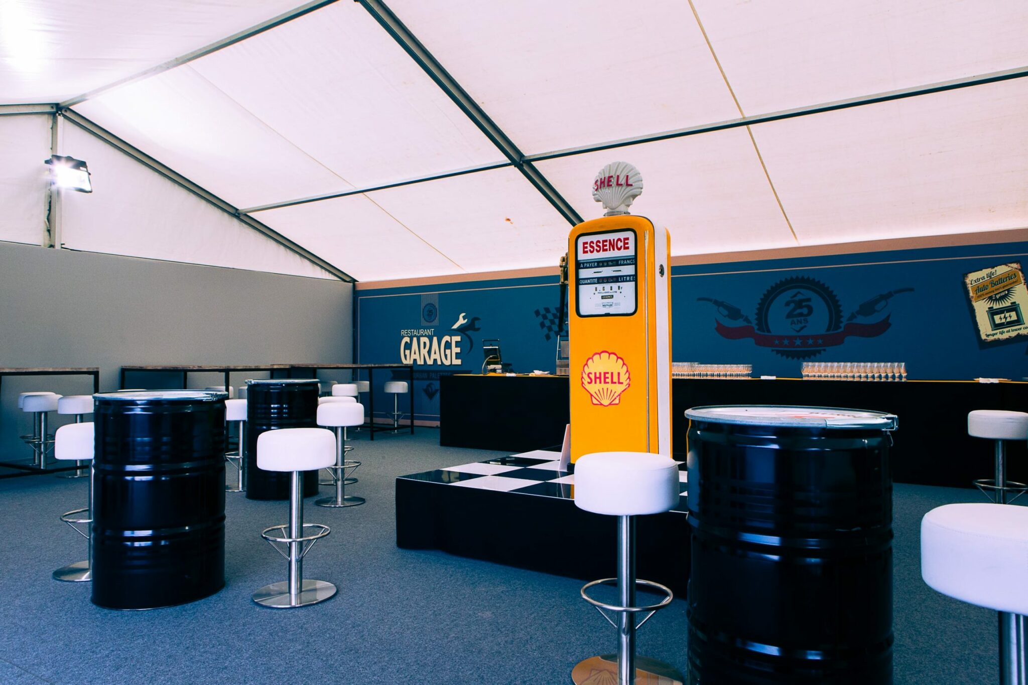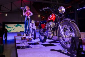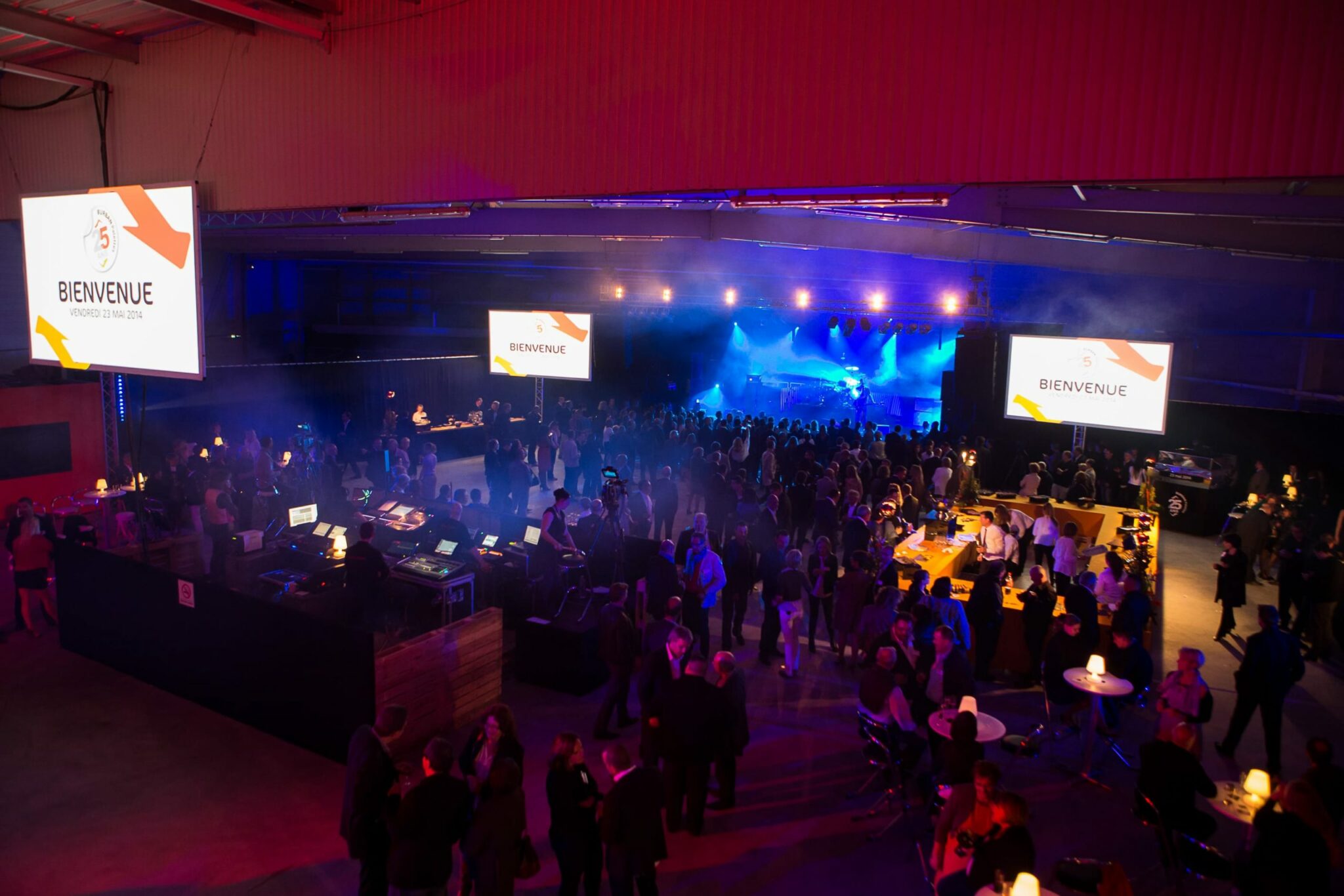 Le dirigeant voulaient également partager sa passion pour les sports mécaniques et souhaitait une scénographie qui l’intègre. Nous avons donc préconisé une mise en scène sur cette thématique pour l’extérieur et avons transformé l’entrepôt en salle de spectacle pour recevoir Louis Bertignac, qui a offert un concert privé à plus de 1000 invités médusés !