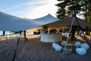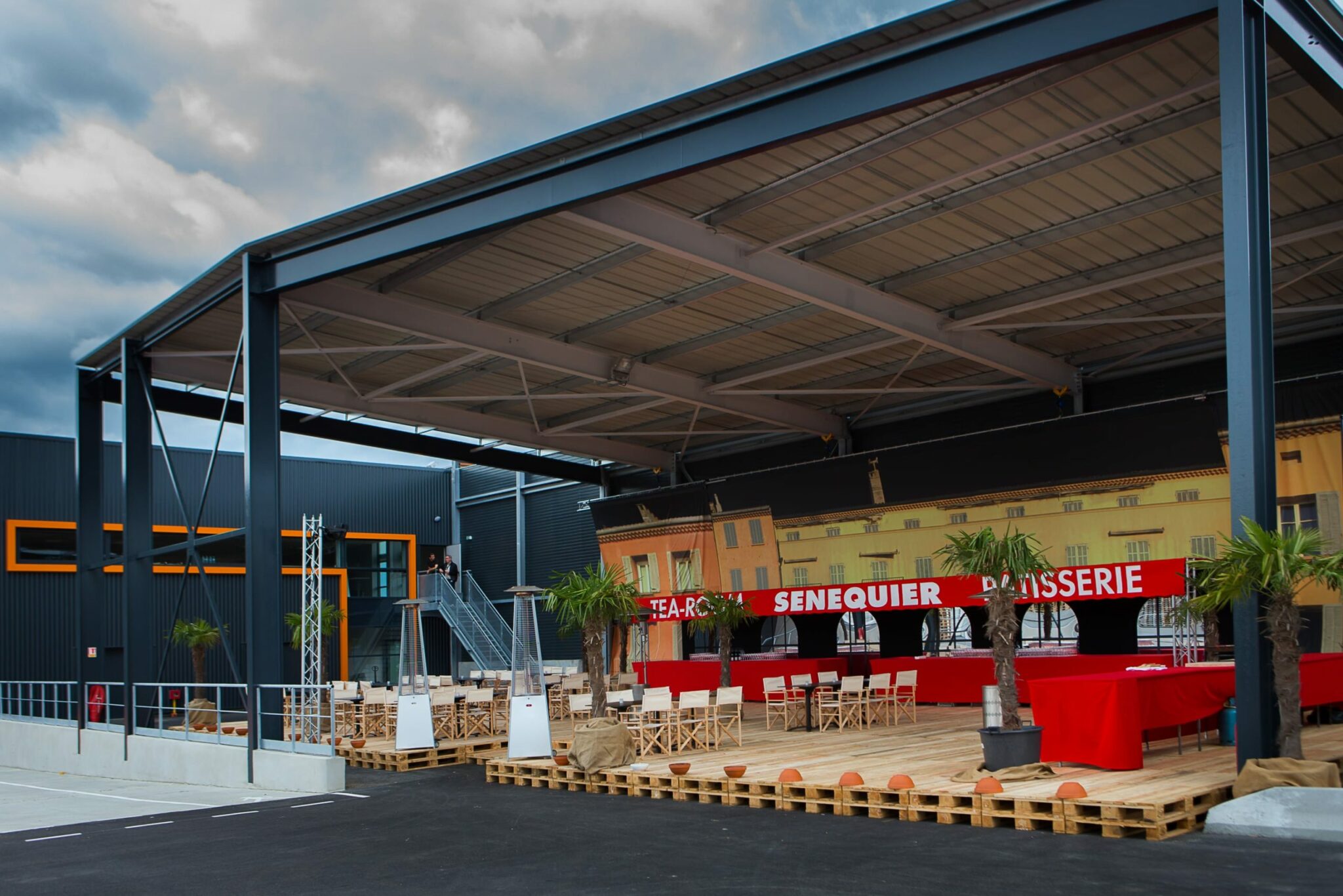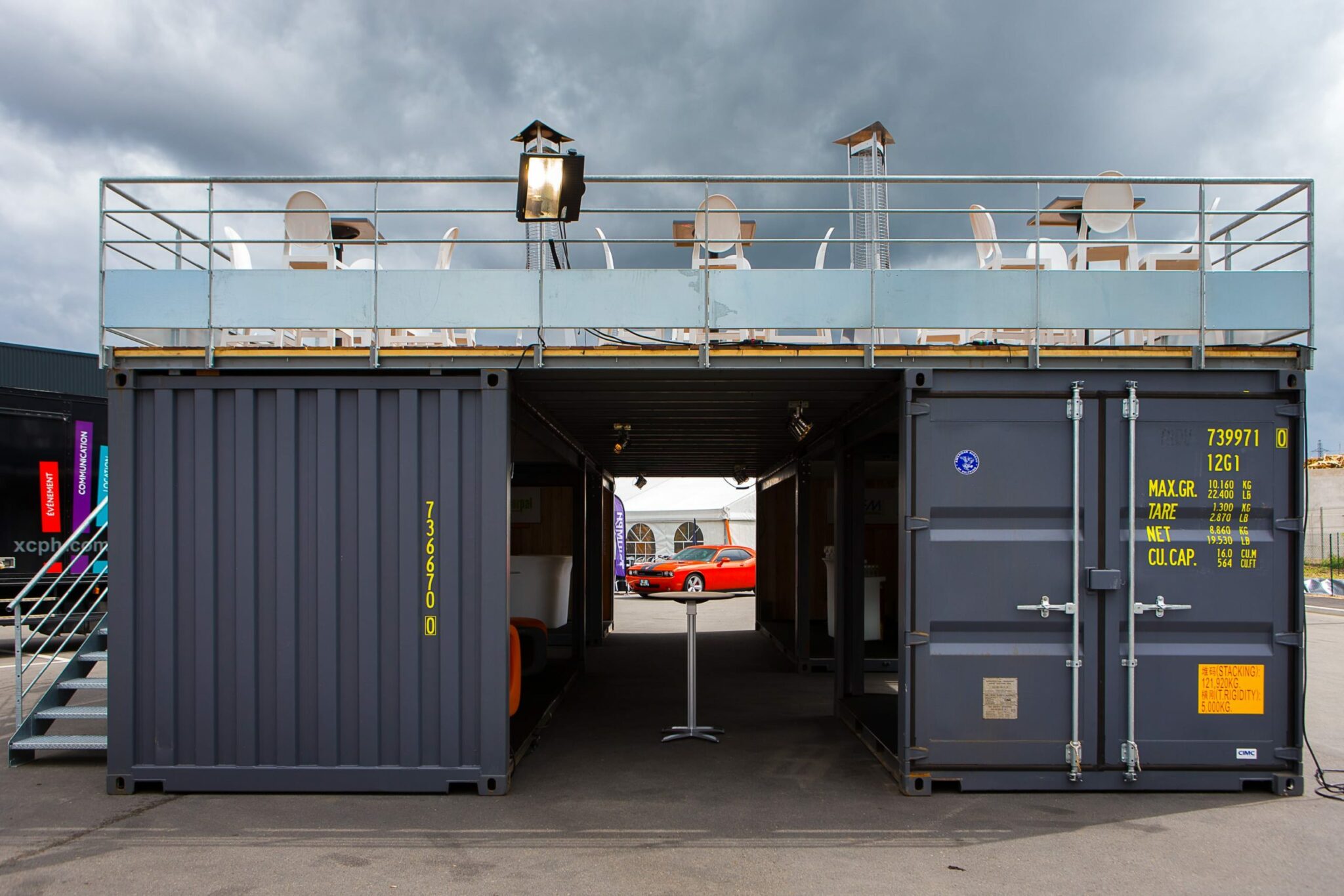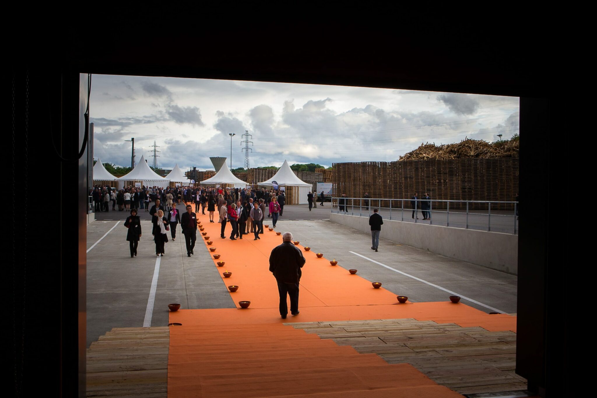 Le dirigeant voulaient également partager sa passion pour les sports mécaniques et souhaitait une scénographie qui l’intègre. Nous avons donc préconisé une mise en scène sur cette thématique pour l’extérieur et avons transformé l’entrepôt en salle de spectacle pour recevoir Louis Bertignac, qui a offert un concert privé à plus de 1000 invités médusés !
