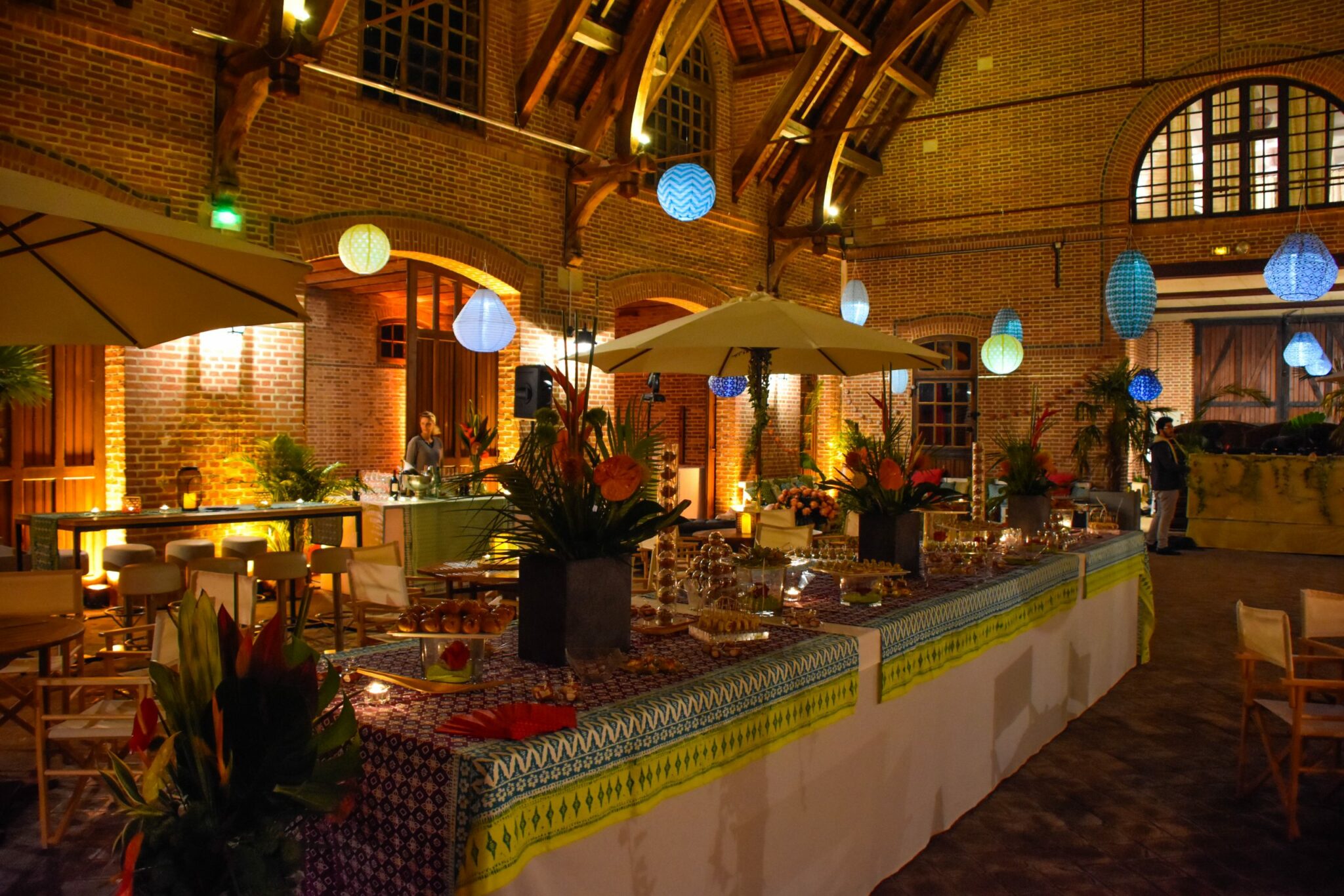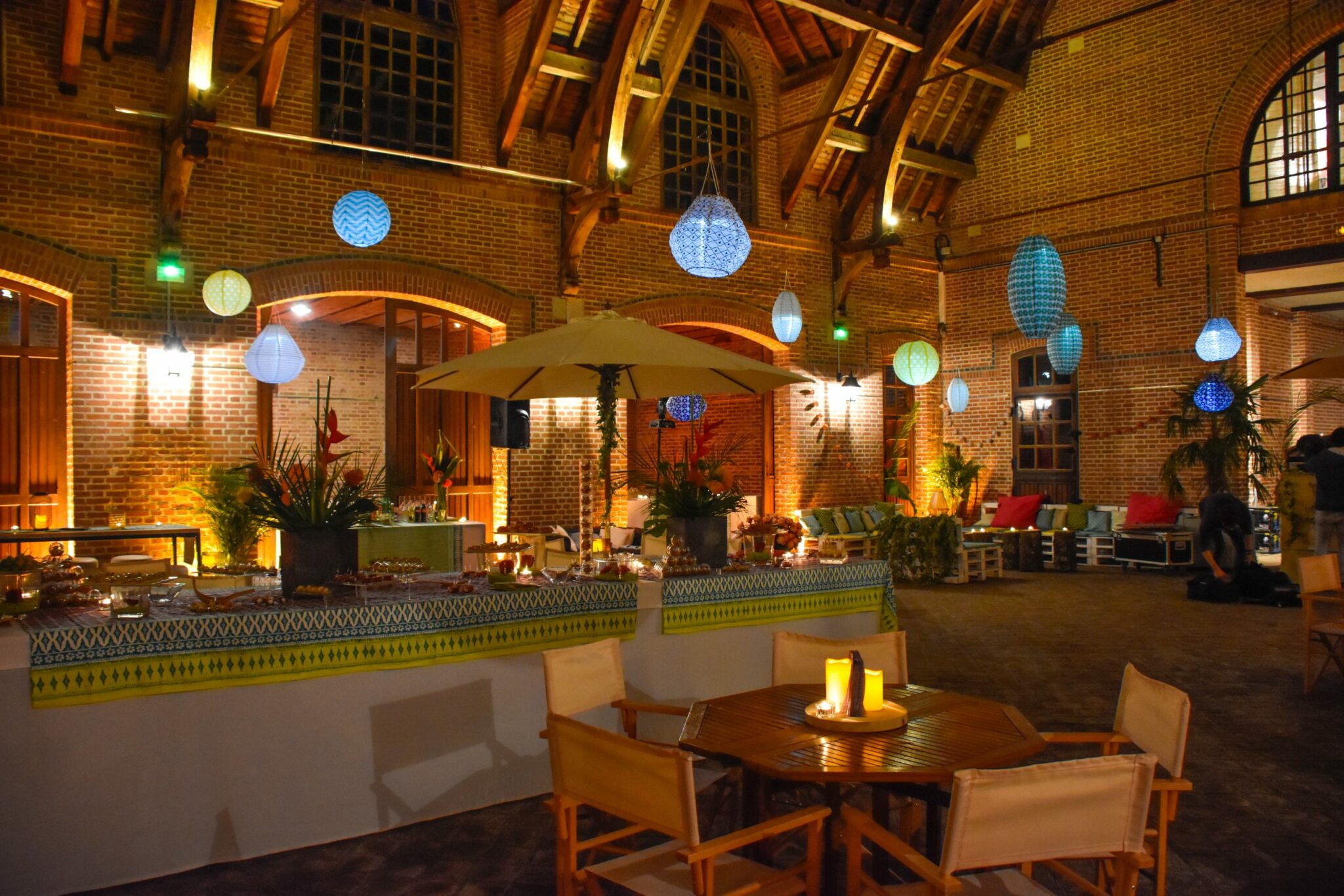 A l’aide de plans et de simulations 3D, nous lui avons proposé une mise en scène intégrant du mobilier choisi en fonction de sa thématique, un éclairage tamisé par des boules en papier japonais et des centaines de bougies.