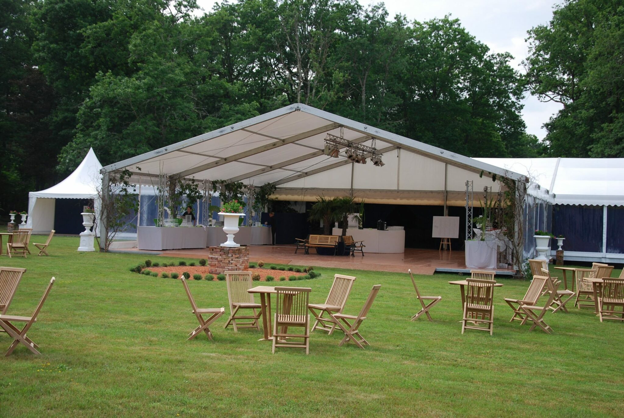 L’installation de la structure et son aménagement, décoration, mobilier et technique ont entièrement été confiés à l’agence ce qui a demandé près d’une semaine de travail car l’accès aux véhicules étant impossible, tout a été manipulé à la main.